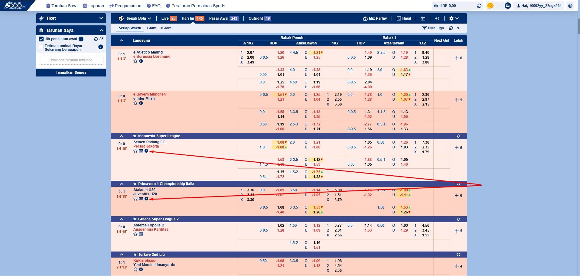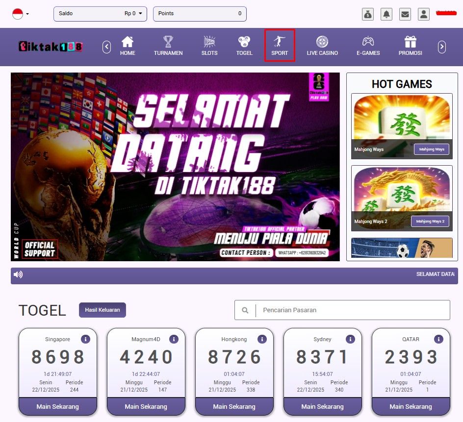 3. Sesudah berhasil mendaftar langsung saja login, ketika berhasil login akan melihat tampilan seperti di bawah ini maka langsung saja klik menu Sport yang sudah kami tandai.
